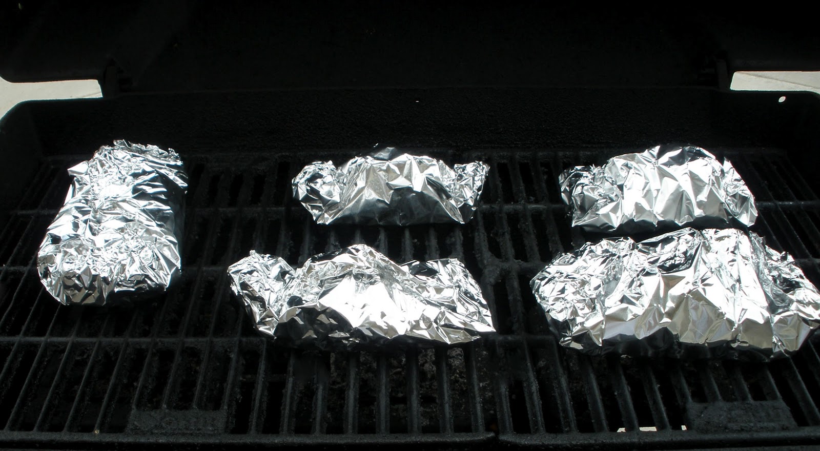 around the mixture, be sure to cover completely. Cook for about 20 minutes, either over hot coals or on a BBQ at a medium to low setting. Rotate the dinners a few times during cooking.